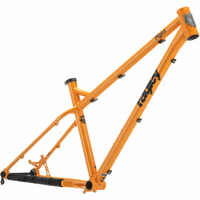 The ideal hardtail for fun and efficiency trail riding, the Ragley Piglet Hardtail Frame is engineered from strong and lightweight Chromoly (CrMo) steel and is designed for use with 27.5″ wheels, 2.6″-wide tyres and 130 – 140mm fork travel.